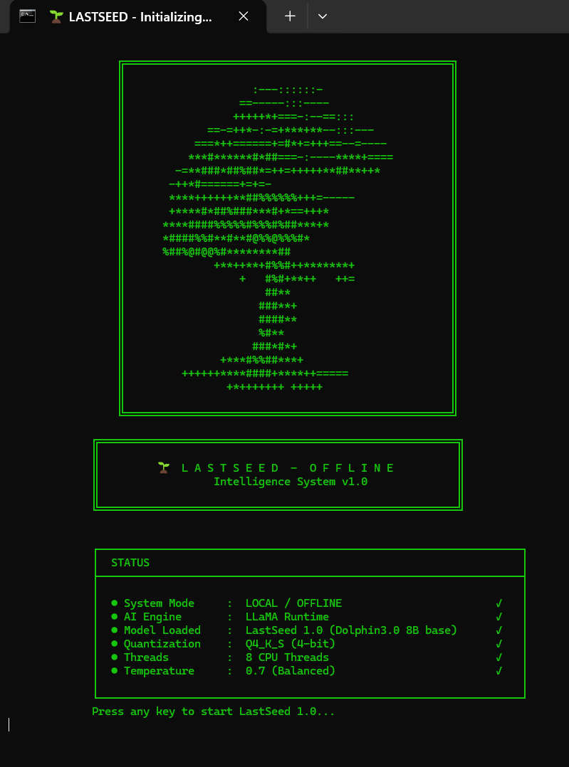 LastSeed is an offline artificial intelligence designed to preserve, organize, and transmit essential human knowledge.